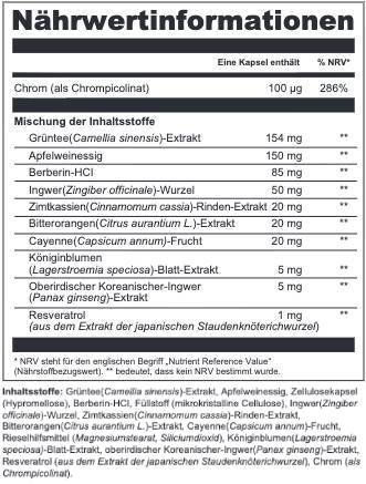 Enthält traditionell verwendete Inhaltsstoffe zur Unterstützung des Stoffwechsels und der Appetitregulierung.